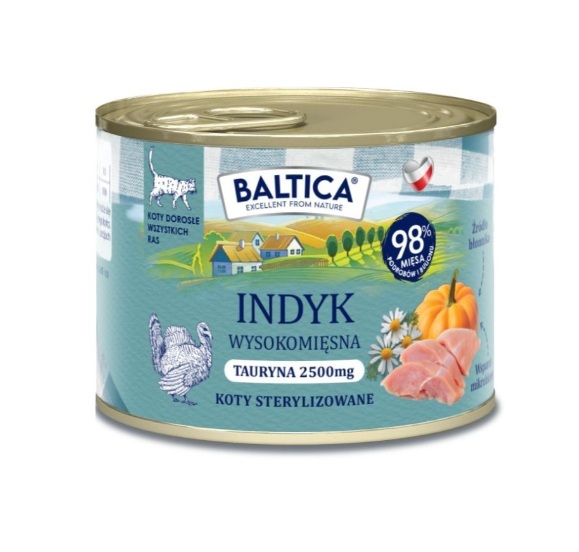 - 98% indyk (63% mięso, 25% bulion z indyka, 5% nerki, 5% wątroba),