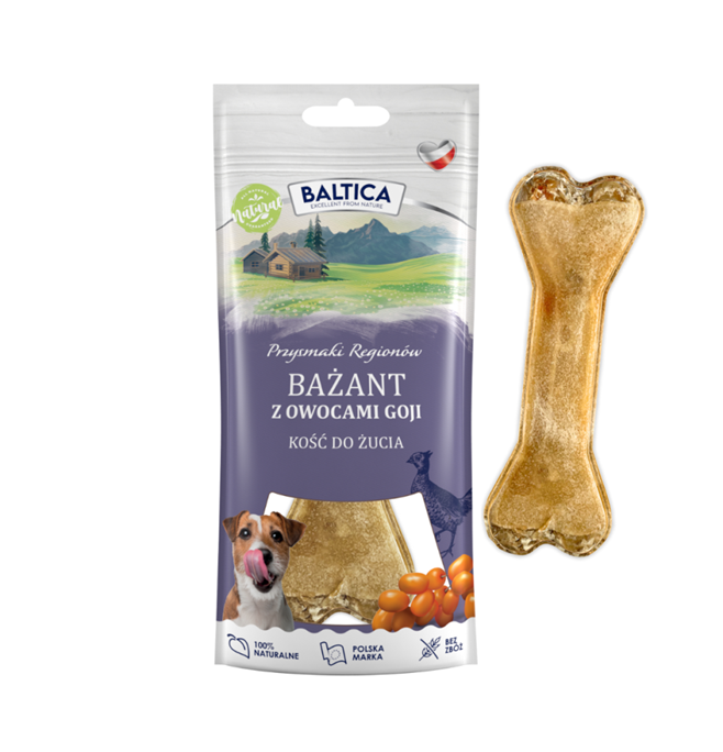 Baltica Kość do żucia bażant z jagodami goji 1 szt naturalny gryzak dla psa