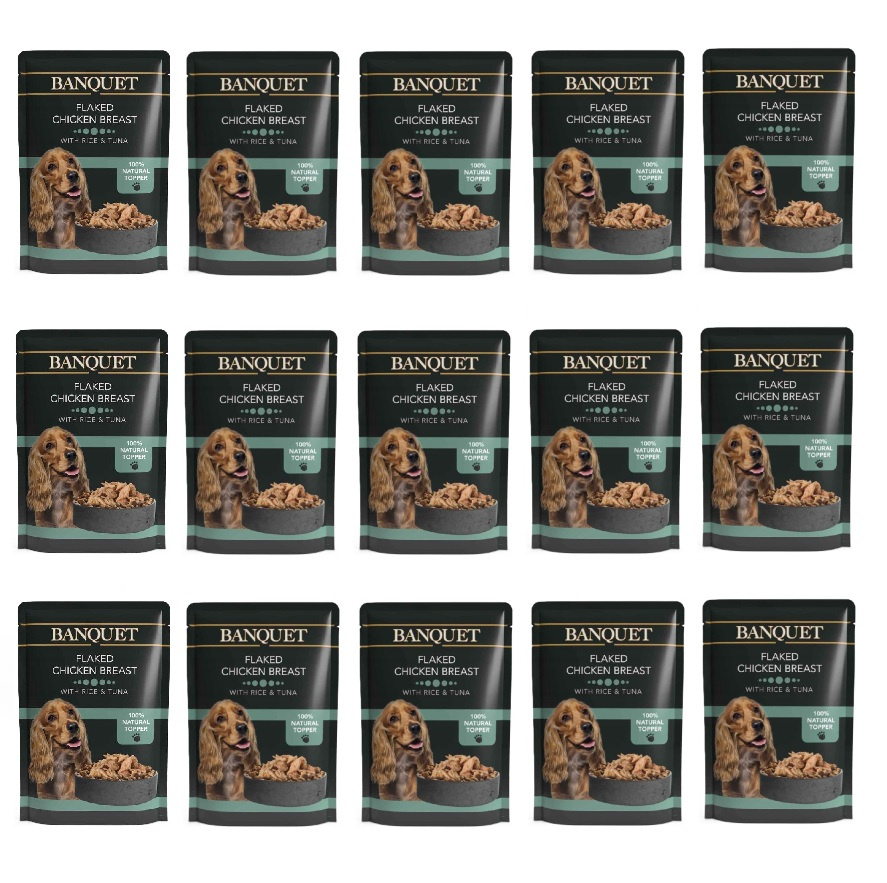 BANQUET kurczak z ryżem i tuńczykiem mokra karma dla psa saszetki 15x100g