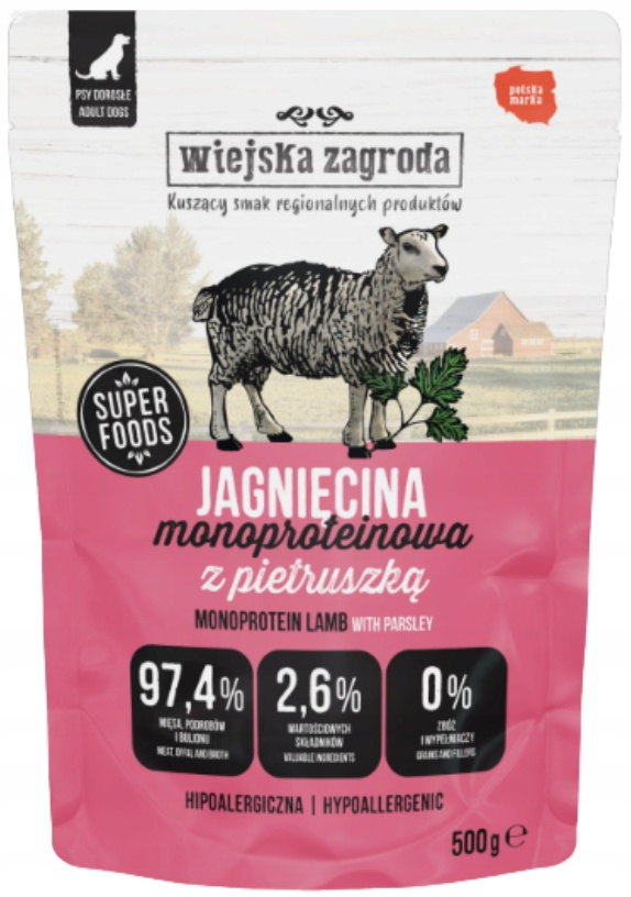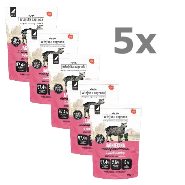 WIEJSKA ZAGRODA Jagnięcina Monoproteinowa karma dla psa saszetka 5x500g