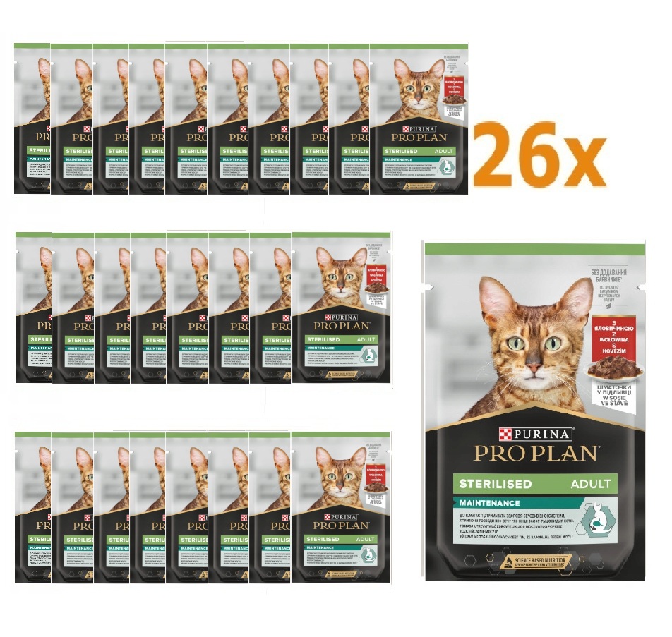 Purina Pro Plan Sterilised z wołowiną saszetka dla kota karma mokra 26x85g
