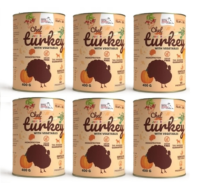 Syta Micha CHEF Indyk z warzywami JUNIOR 6x400g karma mokra dla szczeniąt