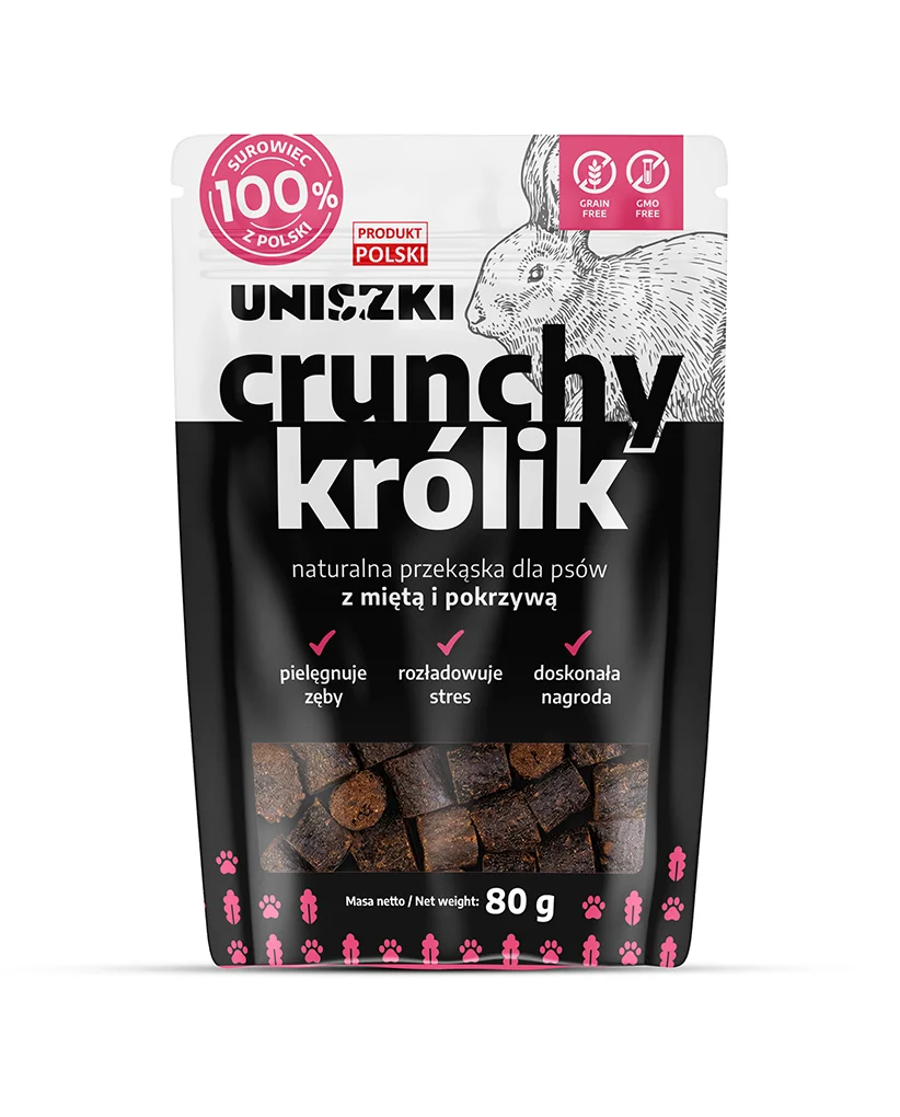 UNISZKI Crunchy królik z miętą i pokrzywą przysmak dla psa 80g