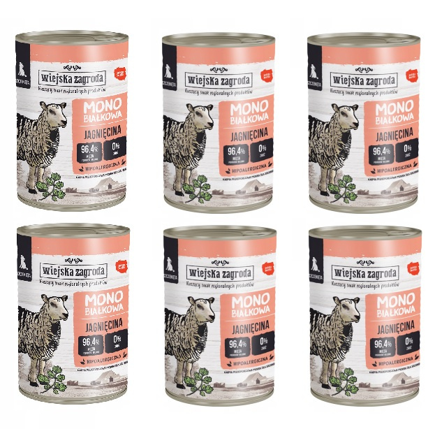 Wiejska Zagroda Monobiałkowa Jagnięcina karma mokra dla szczeniąt 6x400 g