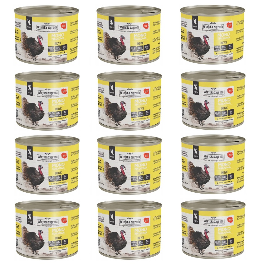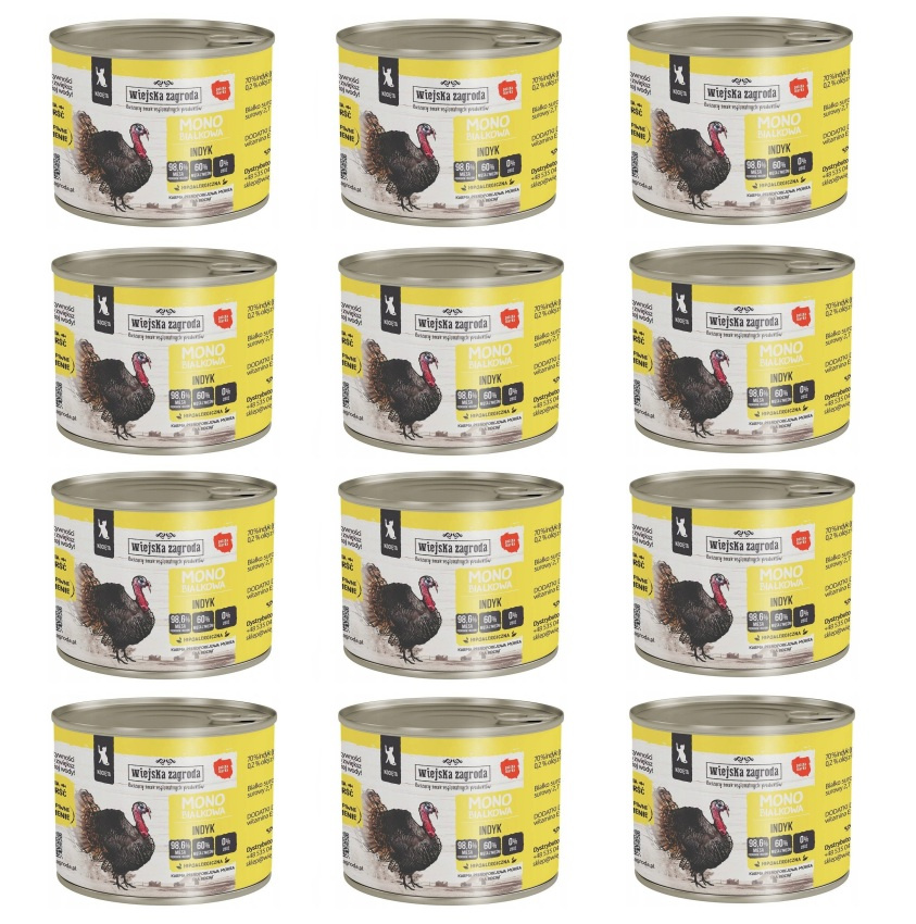 Wiejska Zagroda Monobiałkowa Indyk 12x200g karma mokra dla kociąt